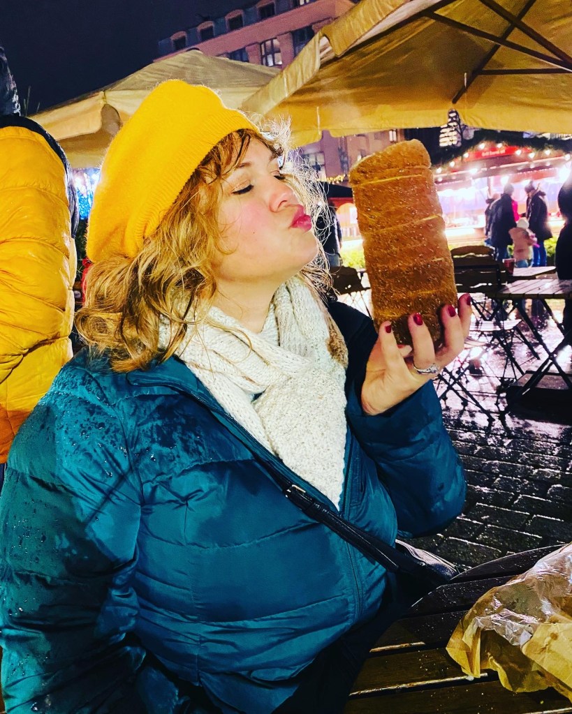 - Chimney cakes (Kürtöskalác or Trdelnik). This tasty pastry can be found all over Eastern Europe. The easiest way to explain it is that it’s a vertical cinnamon bun with a big hole in the middle which steams like a chimney.