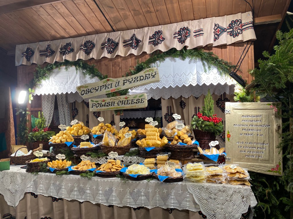 The town square is also where the Christmas market is held. I’ll talk more about some of the unique Christmas market goodies you can find in Poland and eastern Europe in a bit. There are plenty of legitimately great tchotchkes sold by local artisans within the Christmas market and indoor market, the Sukiennice. The Sukiennice (Cloth Hall) is where all the medieval trade of fine textiles, leather, wax, salt, and spices used to take place. Today, you can get excellent leather gloves, shoes, Polish keepsakes, and amber jewelry for an exquisitely low price. If you’re not visiting at Christmas, there won’t be an outdoor market, but you can always hit up the Sukiennice for all your souvenir shopping. The outdoor Christmas market will have beautiful Polish pottery, hand-painted folk-artsy ornaments, and pierniczki, heart-shaped gingerbread cookies.