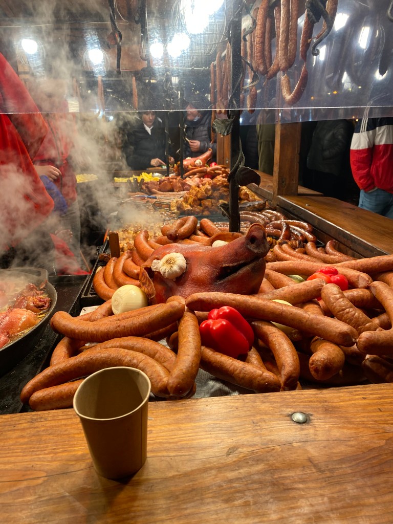 Szara Gęś: On your second night in Krakow (because the first night you’re going to go ham at all those Christmas market food stalls), PLEASE go to Szara Gęś. It’s in a beautifully-restored 13th-century building with a gorgeous vaulted ceiling. Since one American dollar is worth four Polish zloty, you can ball out and eat some truly great meals. Szara Gęś means Grey Goose in English, and the house specialty is a vanilla-custard egg with mango-passionfruit sauce in the middle as the “yolk”, sitting on a bed of shaved chocolate which looks like a bird nest, and THAT is ensconced in a cloud of white cotton candy. You should totally get it to split and definitely don’t eat the whole thing by yourself hahaha who would do that what even that is crazy