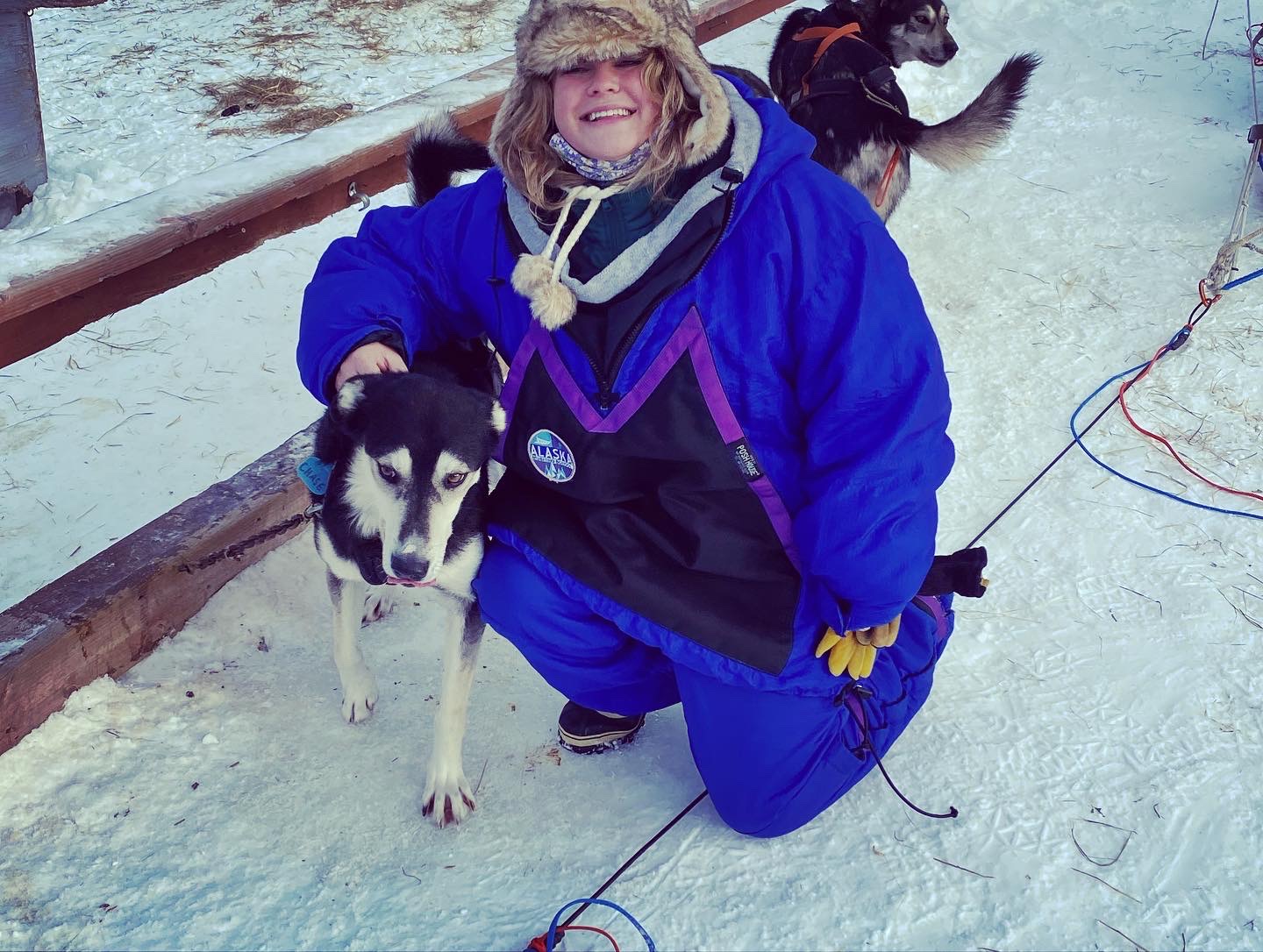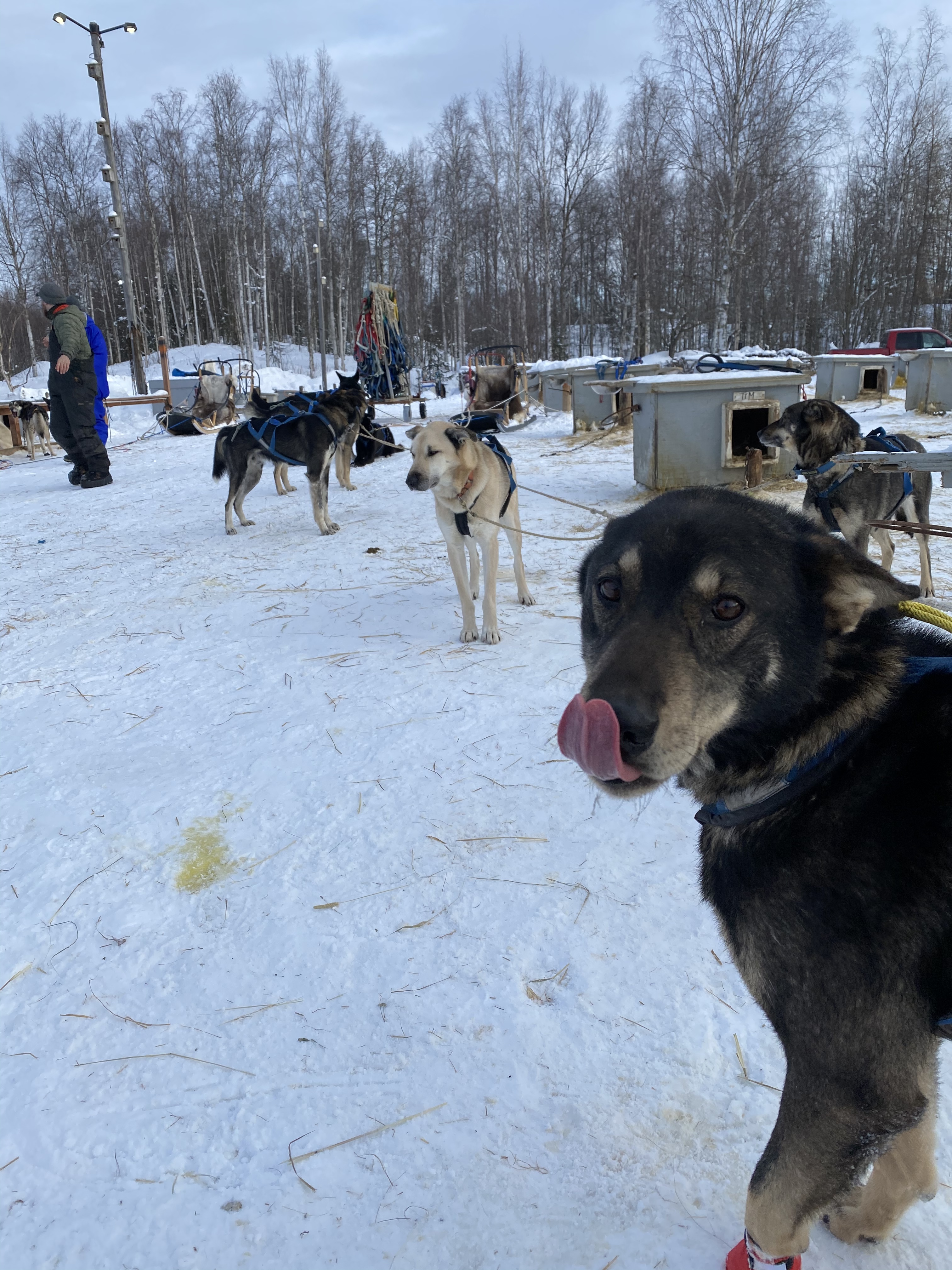 In 2019, Disney made a movie about Togo starring Willem Dafoe as Leonhard Seppala. They needed real-deal sled dogs and an expert musher to be Willem Dafoe’s stunt double. Enter Martin Buser, four-time Iditarod champion. This guy has been racing since the 80s and places in the top ten pretty much every time. Martin Buser’s Kennel, Happy Trails, is about an hour and a half from Anchorage and was (obviously) one of the first places we visited. Tours are given by veteran mushers training for the Iditarod. Again, you should go in February–the Iditarod will be in a few weeks, so the mushers and the dogs are geared up! You’ll see a short film about Martin Buber’s career, Togo, mushing, etc., while the tour guides prepare the biggest and most ludicrous of snow suits for you to wear. (You want to be nice and warm out there, and your regular clothes will get splattered in mud and dog poop on the run.) Then you’ll get a tour of the kennel and meet the dogs, and then the mushers will take you on their practice run. You can be a Passenger Princess like me, but they’ll also let you drive the sled at certain points.