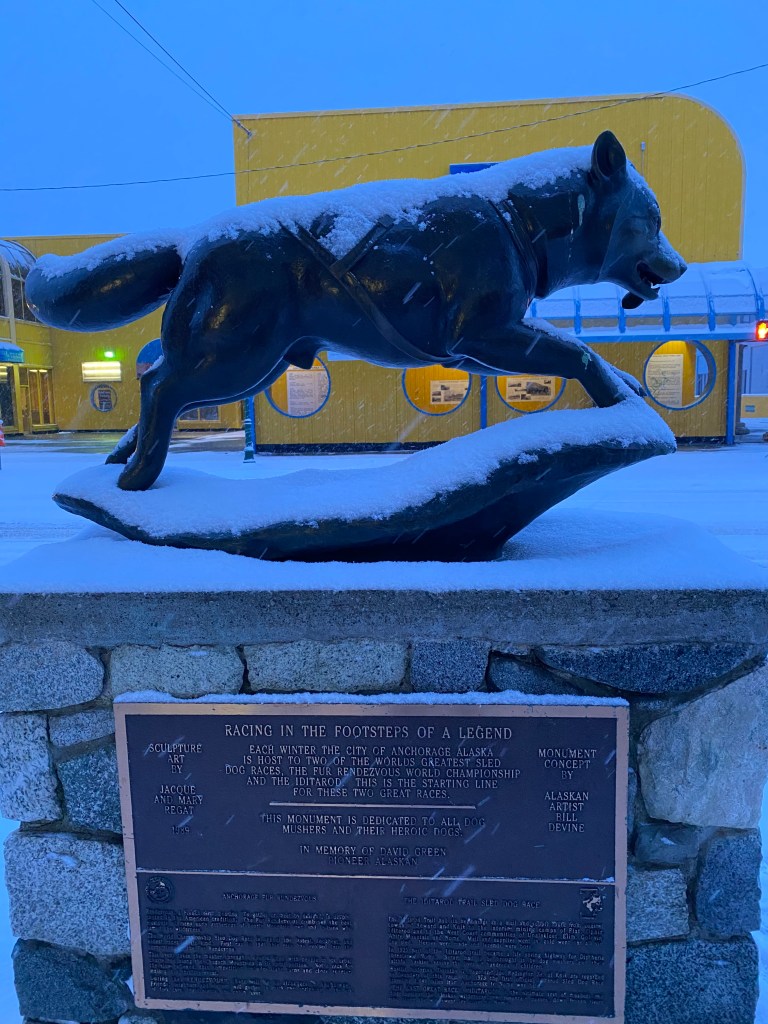 And THEN you should watch the Iditarod Race, the famous dog sled race which runs the same path as the 1925 Serum Run from Anchorage to Nome. It begins in March and takes about two weeks, and if I ever go back to Alaska (I hope so!), it will be to watch the Iditarod. A statue of Balto marks the starting line of the race.