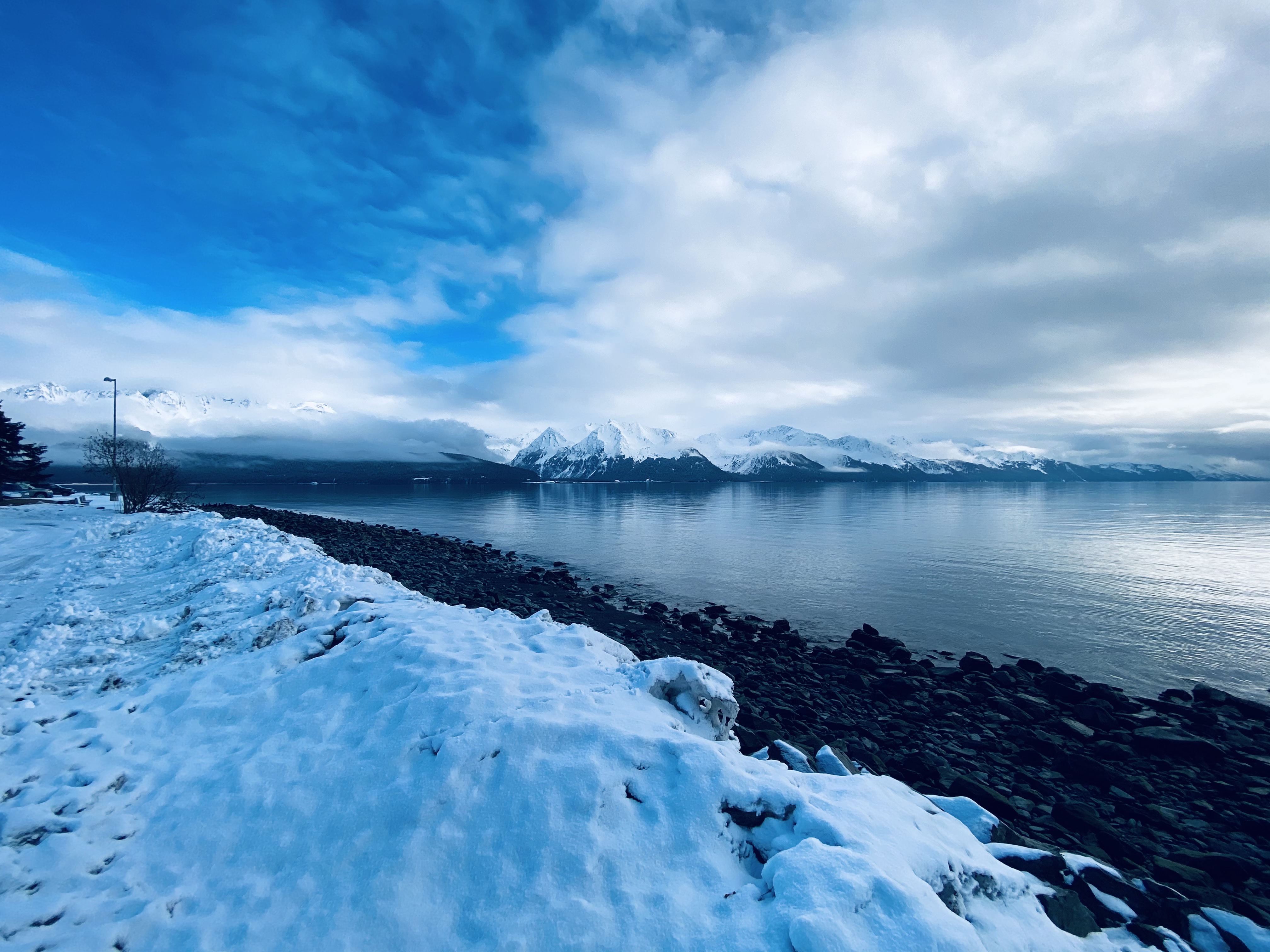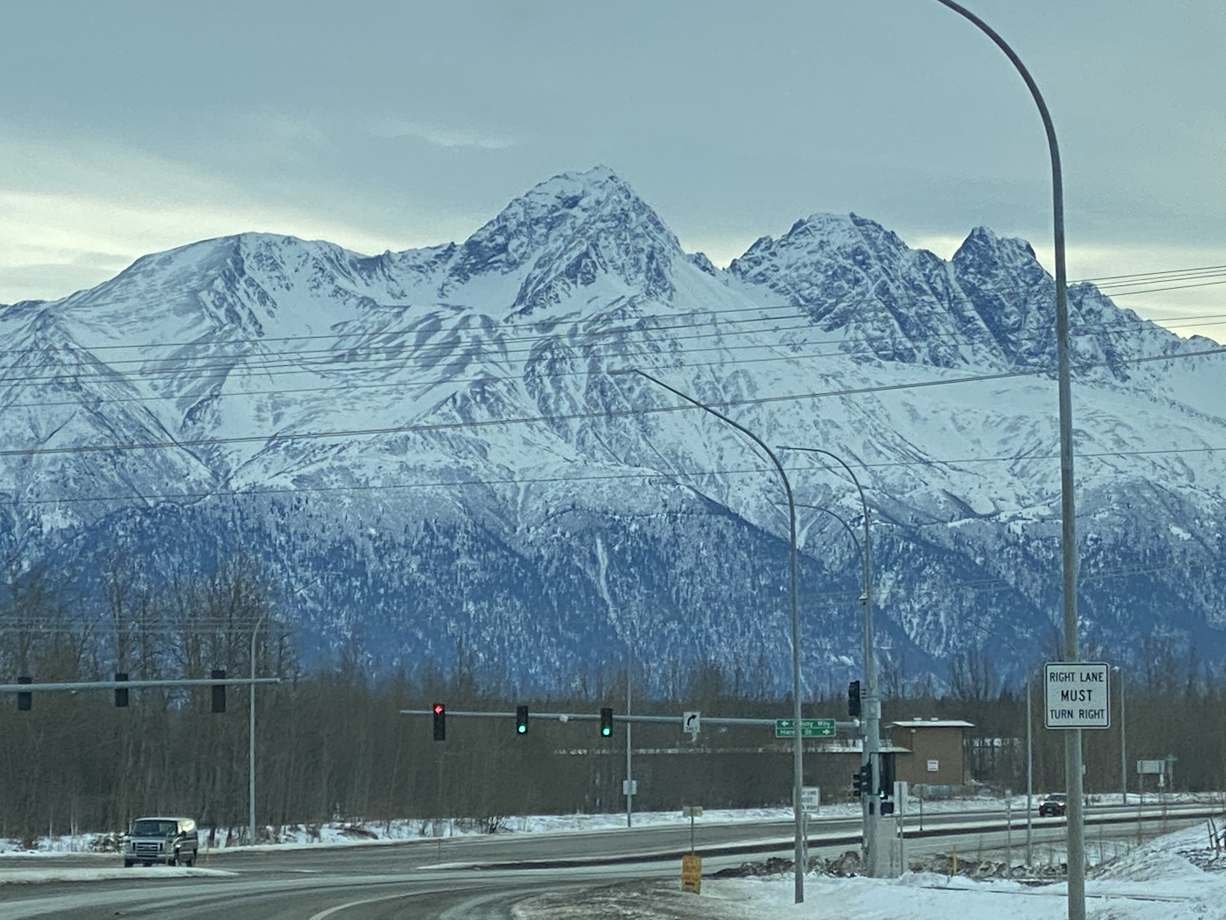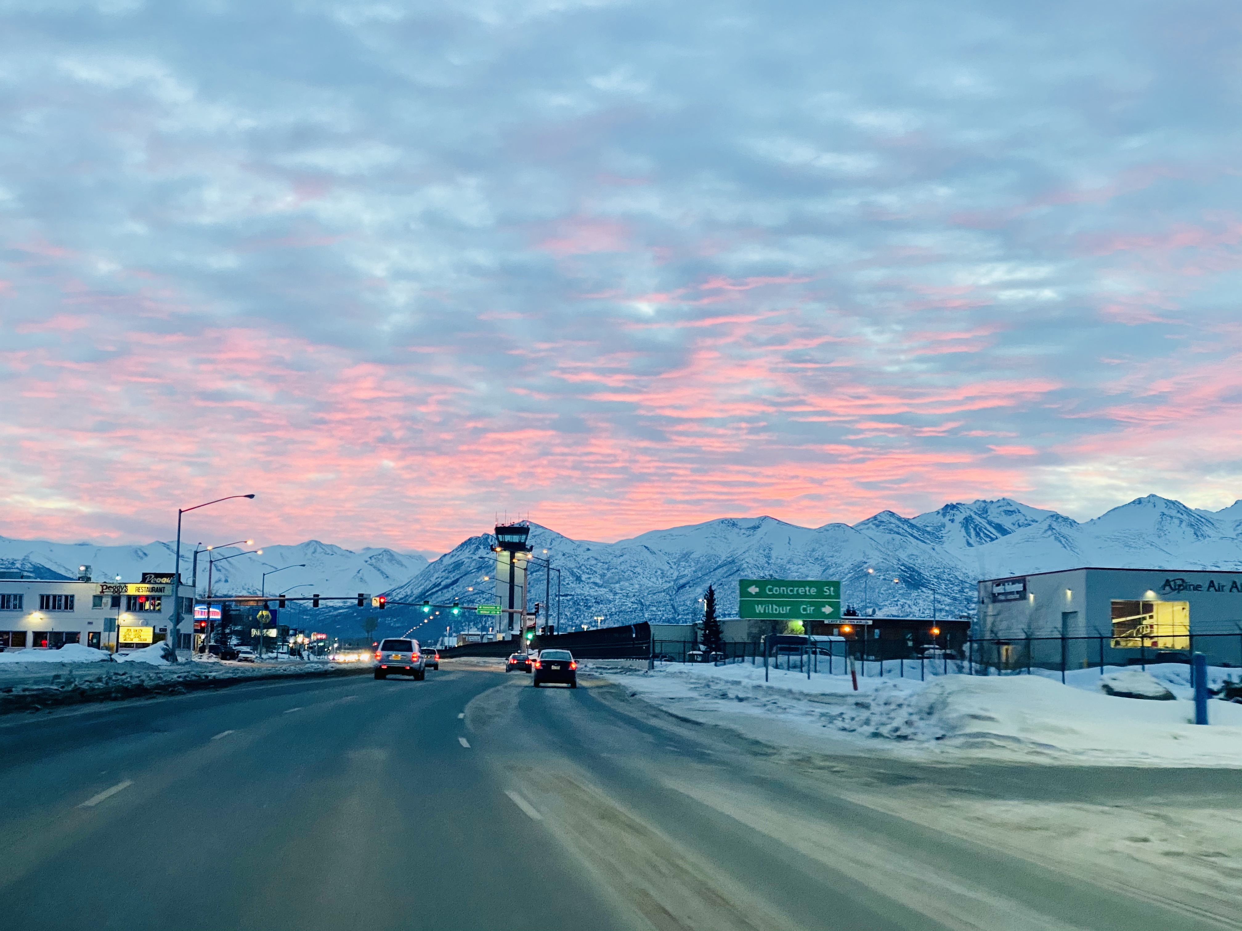 There are three major cities in Alaska: Juneau, Fairbanks, and Anchorage. Juneau is the capital, but go Google Juneau and see where it is on a map. Like… you’re not even in Alaska, you’re in coastal Canada. And Fairbanks is way too far north. Fairbanks will try to get you to visit because, since it’s so far up there, it’s the best place to view the Northern Lights. But I’m just gonna tell you: we stayed a full week in Alaska during peak Northern Lights season, and we never saw them. (I was heartbroken, but I did wind up seeing the Northern Lights a year later… in Fargo, North Dakota??? On Labor Day???) Take my advice: for your first time in Alaska, go to Anchorage. It’s the biggest city by far, but that’s not saying much… the population is about the same as Huntsville, Alabama. Unsurprisingly, not many people live in Alaska. In the depths of winter, they get five hours of sunlight. The same goes for nighttime at the peak of summer, but in winter everything’s dark and blue and closed-up.